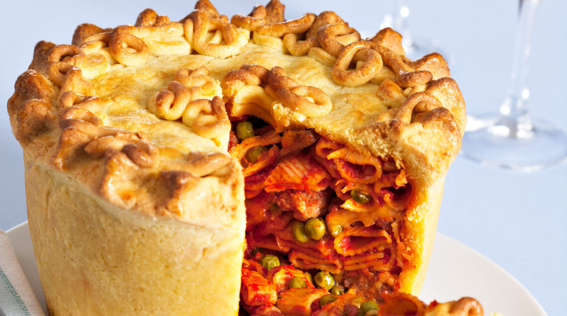 Preparata la base del ripieno, inizia a comporre il timballo di maccheroni.