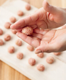 Prepara le polpettine, mescolando la carne con il pane ammorbidito in poco latte, un uovo, 30 g di grana e un pizzico di sale. Preleva piccole porzioni del composto e forma tante piccole polpettine, da friggere in abbondante olio ben caldo.