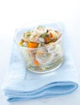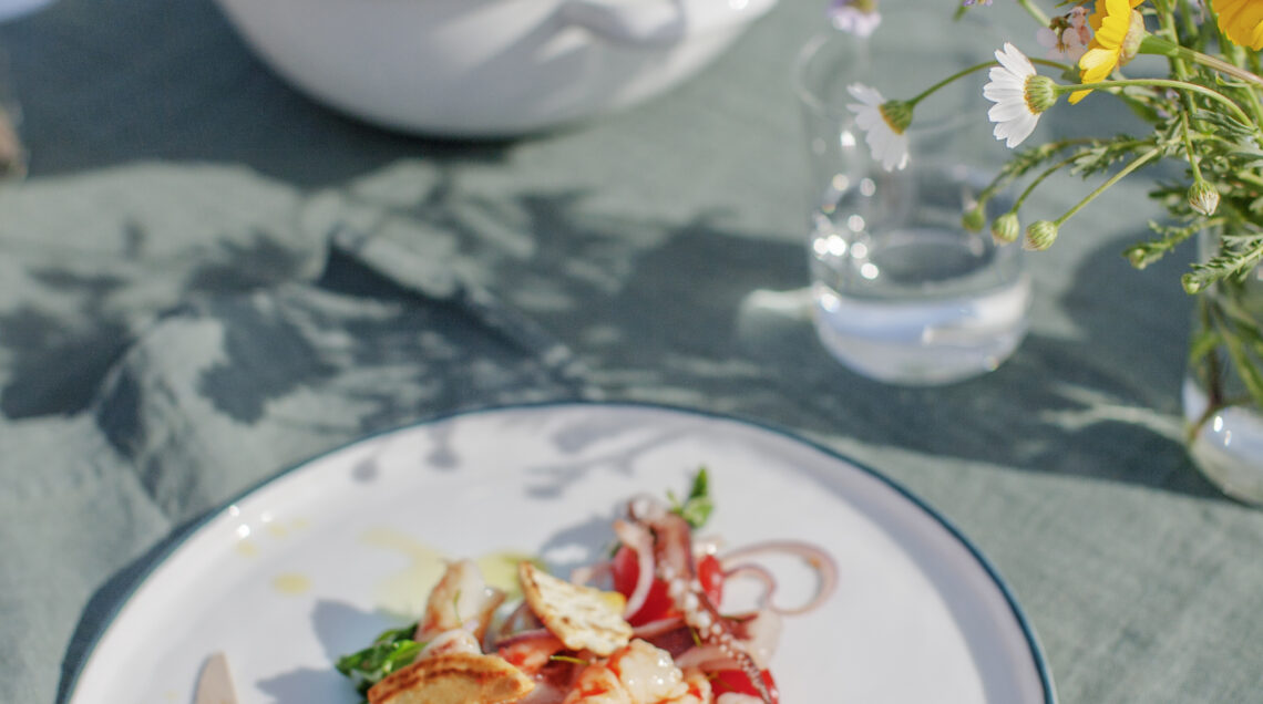 5) Aggiungete il mix all'insalata di pesce e piadine e lasciate riposare 30 minuti prima di servire.