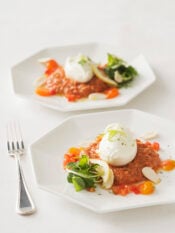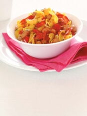 3) Tagliate i pomodorini a spicchi e i cipollotti a fettine e condite entrambi con olio, aceto, sale, pepe.