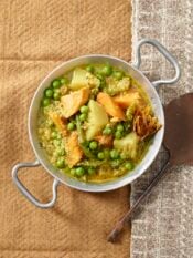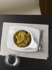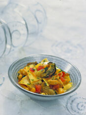 2) Tostate le piadine, spezzettatele con le mani e unitele al pesce.