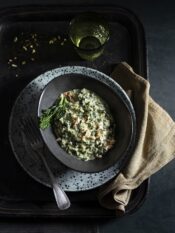 4) Unite l'erba cipollina tritata e le foglie del basilico e mescolate.