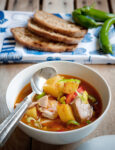 2 Pulite i pomodori e i peperoni, tagliate la polpa a pezzetti piccoli. Intanto, fate soffriggere l'aglio rimasto, spellato, in una pentola con 1 cucchiaio di olio. Dopo 1 minuto, eliminatelo e aggiungete il riso; mescolate fino a quando il riso diventa trasparente: abbassate la fiamma al minimo, aggiungete 3 tazze di acqua e coprite. Quando l'acqua sarà completamente evaporata, spegnete il fuoco.