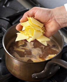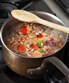 Intanto, scolate metà dei fagioli con qualche cucchiaio di brodo di cottura e frullateli fino a ottenere una crema liscia; riversatela nella casseruola con i fagioli interi e rimettete sul fuoco.