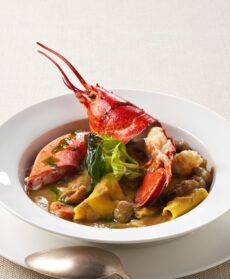 Elegante ma rustico: così si può definire questo primo piatto di maltagliati freschi all’uovo serviti in una crema di borlotti e impreziositi dalle carni sode e succulente dell’astice.
