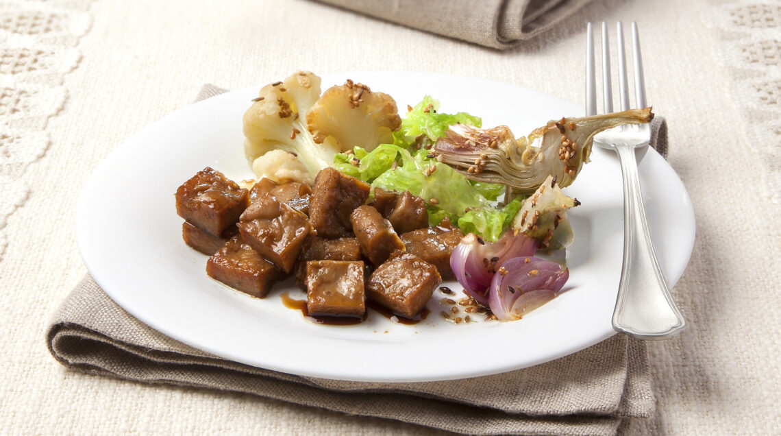 Seitan speziato con verdure e salsa di soia