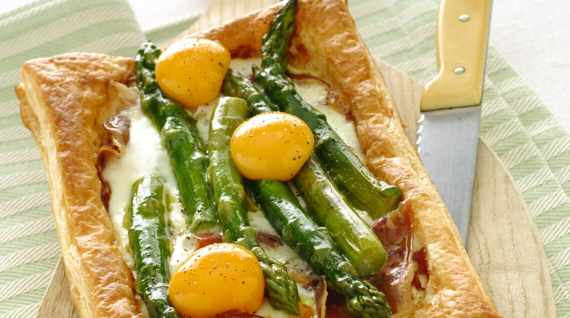 Le sfogliatine con uova e asparagi sono perfette per il brunch di Pasquetta. Il prosciutto crudo è in armonia con la dolcezza delle verdure