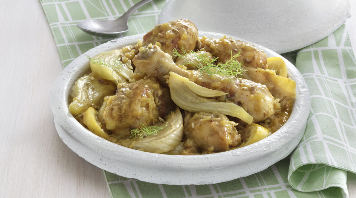 Un piatto etnico dai profumi intensi: curcuma, zafferano e zenzero avvolgono pollo e finocchi regalando un buoquet irresistibile