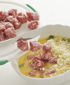 Potete utilizzare lo stesso composto come farcia per una squisita torta salata: rivestite lo stampo con un rotolo di pasta sfoglia, bucherellate il fondo, cospargetelo di pangrattato e versatevi il miscuglio di salsiccia, emmentaler e panna preparato.