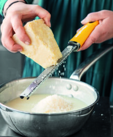 Unite il grana padano dop riserva oltre 20 mesi grattugiato e mescolate. Tenete da parte due mestoli di salsa per accompagnare.