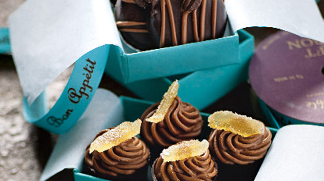 3) Staccate i pirottini solidificati dagli stampi. Trasferite la crema al cioccolato al latte in una tasca da pasticceria montata con la bocchetta a stella e riempite i pirottini. Decorateli con pezzettini di zenzero candito e teneteli in fresco fino al momento di servire.