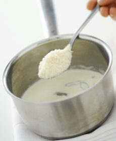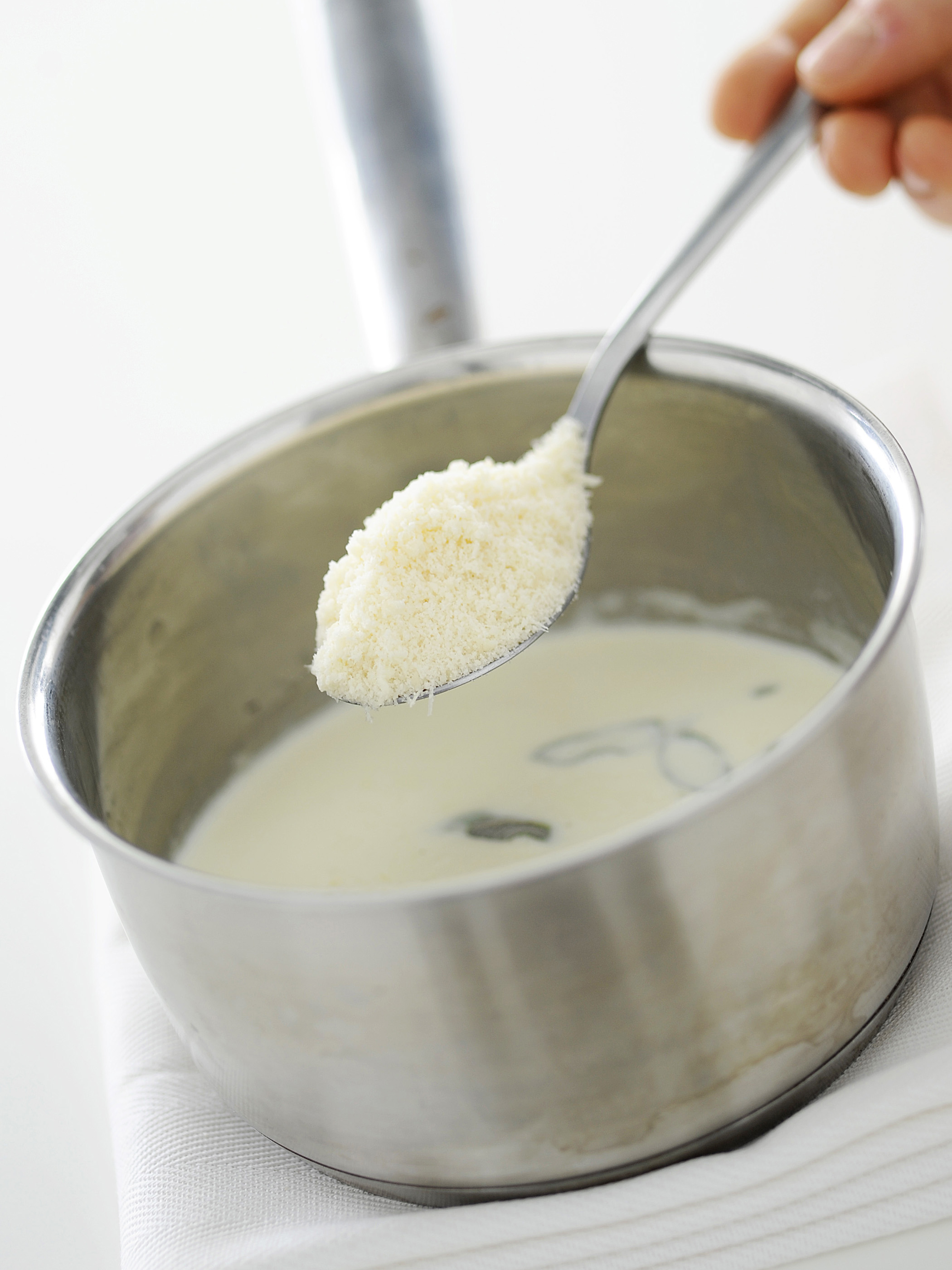 Versate la panna in una pentola alta, portatela a bollore assieme alla salvia e al Parmigiano. Lasciate cuocere per circa 2 minuti, spegnete, lasciate raffreddare. Togliete la salvia dalla crema, aggiungete la farina di riso, il mascarpone e le uova. Salate a piacere e mescolate delicatamente. Versate il composto in uno stampo con capienza 7 dl imburrato. Mettete lo stampo in una teglia con acqua bollente, facendo attenzione a non superare, con l’acqua, i due terzi dell’altezza dello stampo. Cuocete in forno per 50 minuti a 160°.