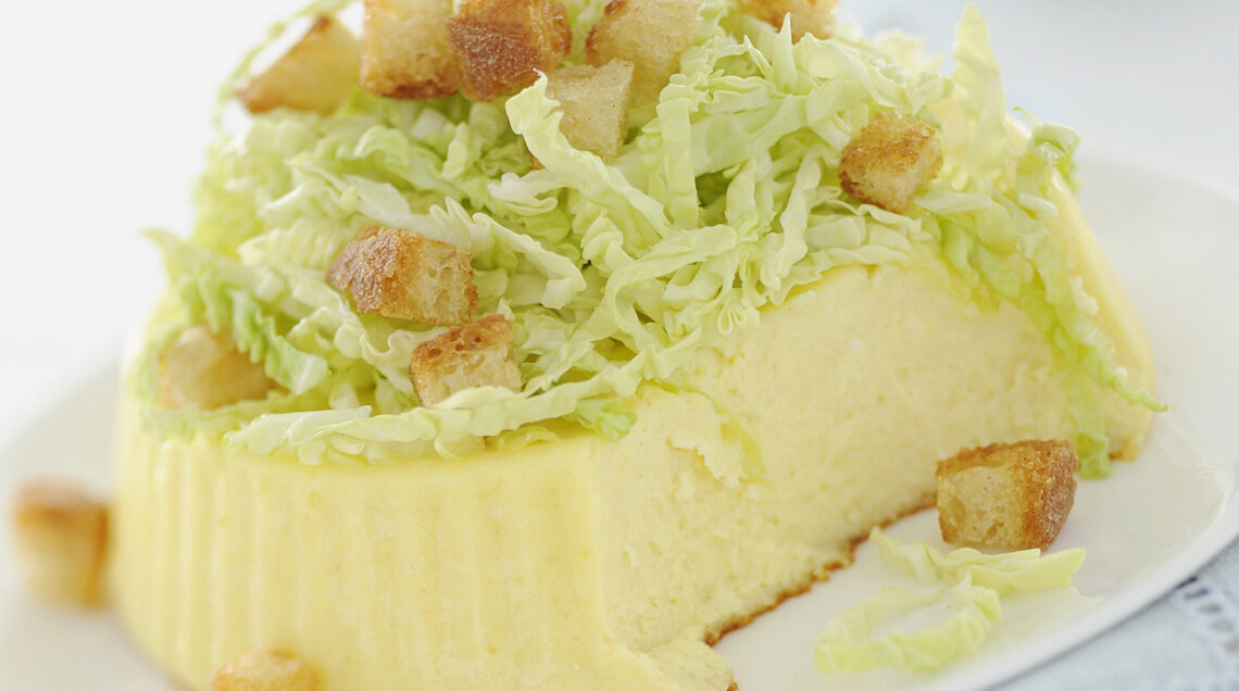 Mascarpone, panna fresca, Parmigiano, tre prodotti caseari d'eccellenza per un budino salato da servire come antipasto o secondo; la cottura in forno a bagnomaria è dolce e delicata per rendere il composto sodo ma ancora morbido. Tono su tono l'accompagnamento con la verza che potete sostituire con cavolo cappuccio rosso per accendere di colore il piatto.