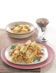 4) Completa. Dividi il composto sulle crèpes, piegale a fazzoletto e disponile in una pirofila imburrata. Copri con il guanciale rimasto, tagliato a listarelle, il pangrattato, il resto del grana e qualche fiocchetto di burro. Trasferisci le crèpe con castagne e guanciale in forno a 200° per 15 minuti; sforna, distribuisci nei piatti da portata e servi.