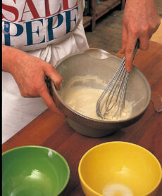 1) Ottieni la crèpe suzette. Frulla nel mixer la farina con il latte, 0,7 dl d’acqua, zucchero semolato, sale, uova e 30 g di burro fuso fino a quando non ottieni una pastella liscia e omogenea; versa in una ciotola e falla riposare per 30 minuti.
