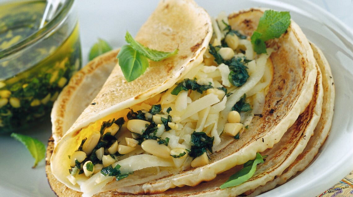 I panigacci sono un tipo di pane rotondo e schiacciato, non lievitato, tipico della cucina toscana. In questa ricetta sono proposti con pecorino senese, pinoli, aglio ed erbe aromatiche, per una squisita merenda rustica.