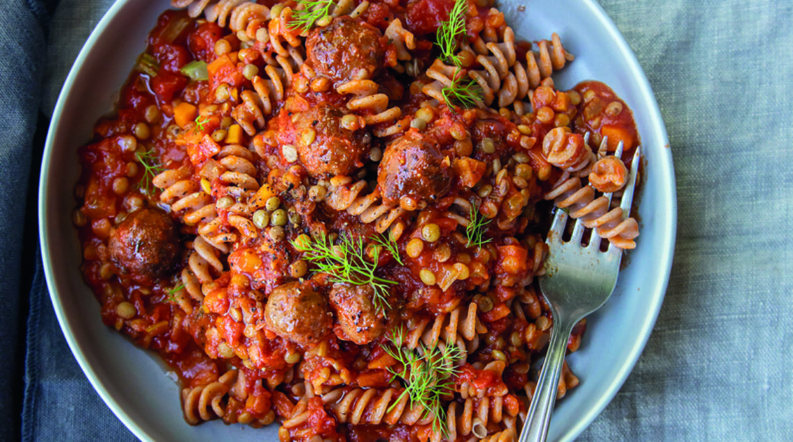 L'alternativa alla pasta di semola sono questi fusilli di farro, conditi con un ricco e succulento sugo di carne ovina e legumi