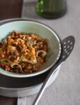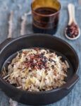 8) Condisci con una noce di burro, mescola delicatamente e cospargi con le cipolle, grana, pepe e qualche fiocchetto di burro.