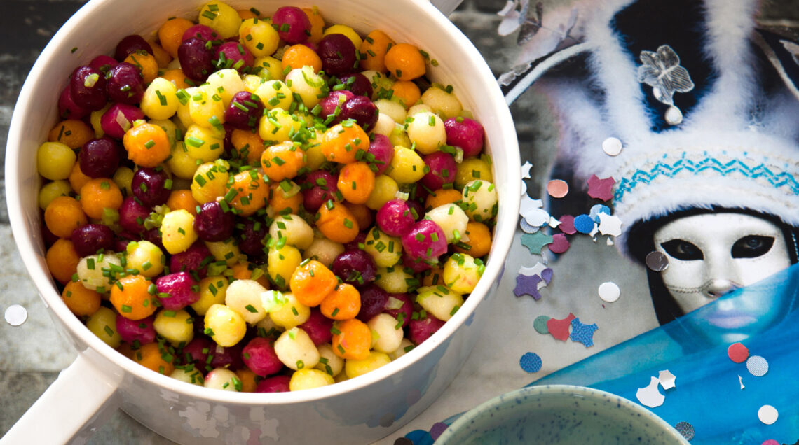 5) Per quando riguarda il condimento puoi puntare sul classico burro e salvia oppure preparare qualcosa di più originale. Noi ti proponiamo di stemperare in una padella ampia 6 filetti di acciuga sott'olio in 6 cucchiai di olio extravergine d'oliva. Salta gli gnocchi colorati già lessati nell'intingolo e ultima con un trito di erba cipollina e prezzemolo.