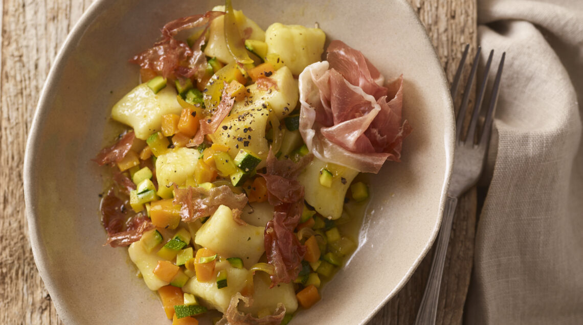 Gli gnocchi fatti in casa, le verdure di stagione e quel tocco in più che regala il pregiato salume. Un'esperienza gourmand