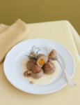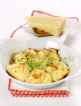 3) Disponi gli gnocchi su un largo piatto di portata, precedentemente riscaldato, condiscili con il sugo di funghi e con le briciole di pane rosolate in padella con l'olio rimasto. Se ti piace, cospargi con altro pepe, e servi.