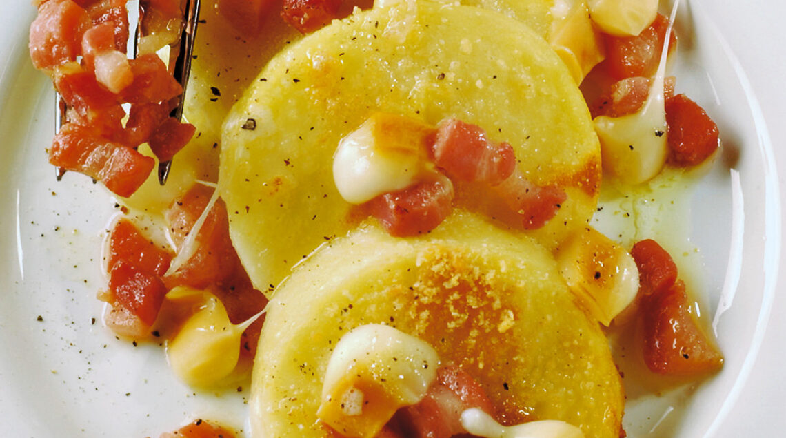 3 Servite finalmente gli gnocchi alla romana con la pancetta.