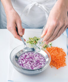 Il gusto della semola in granelli è al servizio di pesce pregiato servito con il suo guazzetto. Un primo piatto preparato con cous cous pronto, facile e veloce, che per gli amanti del fai da te si prepara anche in casa come vi raccontiamo qui. Il sapore delicato di moscardini e mazzancolle è rafforzato dalla bottarga e si sposa con fragranti ortaggi. Servito freddo dopo qualche ora è ancora più buono.