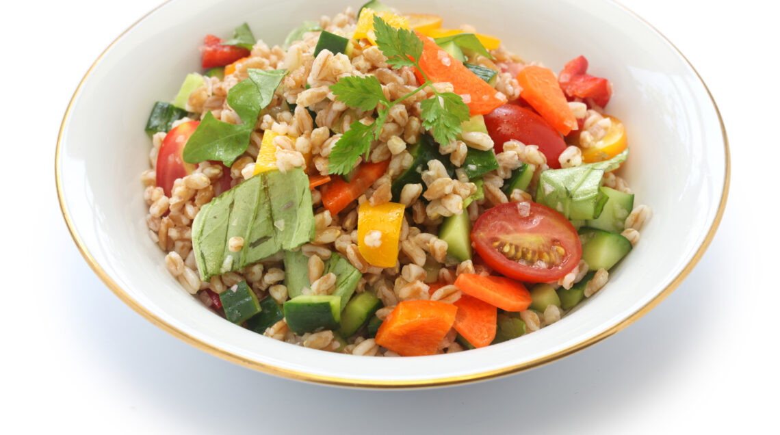 4 Scolate il farro e versatelo nella padella con le verdure, mescolatelo delicatamente. Trasferite l’insalata tiepida di farro in una ciotola capiente e servite subito.