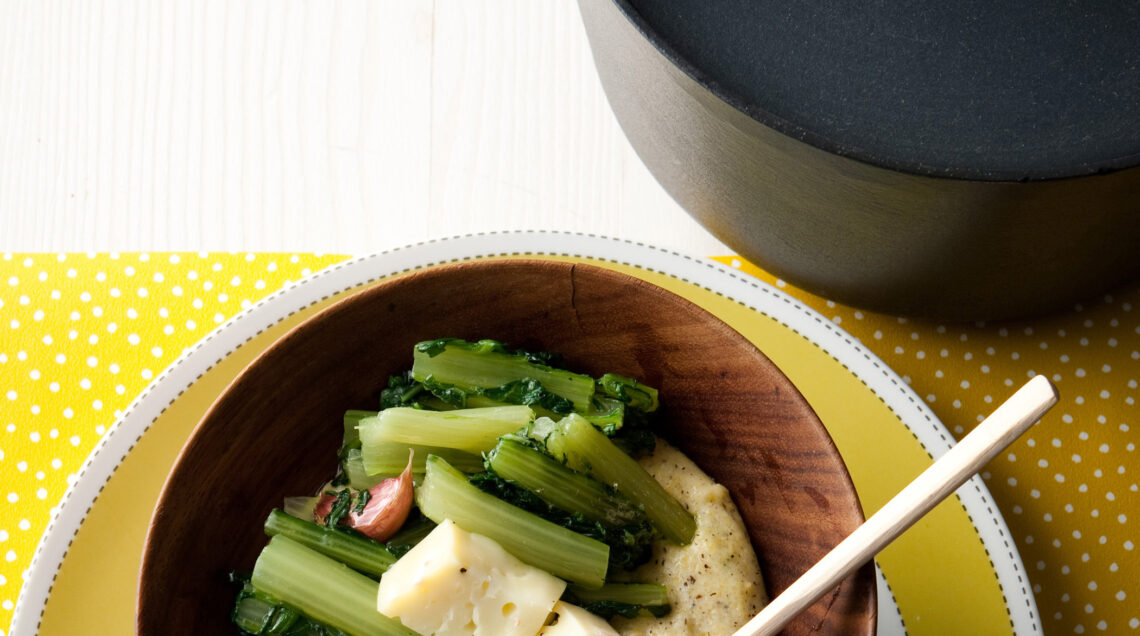 2) Versa la crupa nelle ciotole individuali e guarniscila con la verdura. Servi la crupa con la catalogna con qualche pezzetto di formaggio e portala in tavola ancora calda.