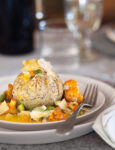 3) Trita le foglie di 4 rametti di maggiorana e 2 di salvia. Trita anche l’aglio, privato dell’eventuale germoglio, e 1 piccola cipolla.