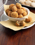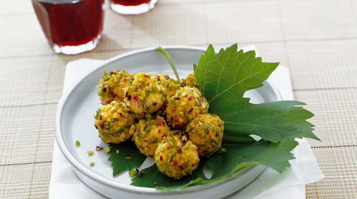 Per realizzare la ricetta delle polpette di polenta innanzitutto cuoci 200 g di polenta a cottura rapida in 6,5 dl di acqua salata bollente. Appena è tiepida, mescolaci 3 tuorli e 40 g di formaggio stagionato. Sala, pepa e forma tante palline grandi come noci. Passale negli albumi leggemente sbattuti e poi in 150 g di granella di pistacchi. Infornale a 200° per 10 minuti e servile con un Marzemino novello.