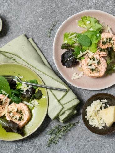 Tagliuzzate l’erba cipollina con un paio di forbici. Grattugiate il Grana Padano DOP e trasferitelo in una ciotola.