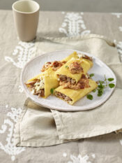 2) Intanto, dissalate i capperi in acqua fredda, tritatene 2 terzi con le foglie di 3 rametti di menta. Scolate bene la ricotta, impastatela con il trito aromatico e 1 cucchiaino di scorza di limone grattugiata. Regolate di sale e pepate.