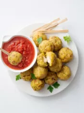 3) Con le mani inumidite, ricava dal composto tante palline grandi come una noce; man mano che sono pronte, tuffale nel brodo in ebollizione e falle cuocere per 12 minuti. Intanto, taglia a dadini il lardo e a listarelle lo speck rimasto e falli rosolare separatamente (prima il lardo e poi lo speck) in una padella antiaderente calda.