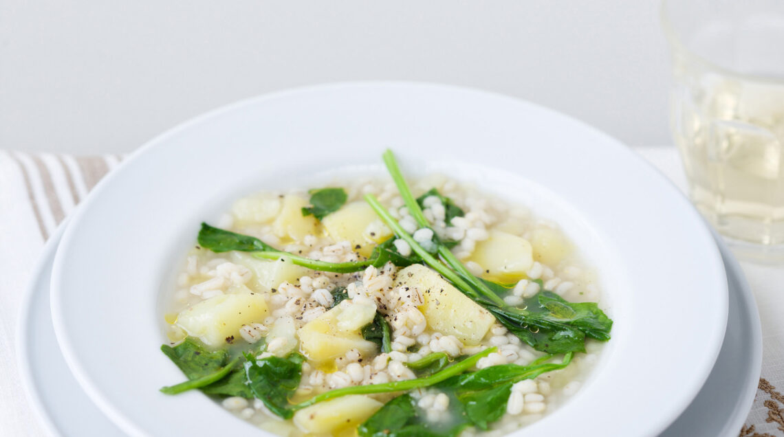 5) Sciacqua l’orzo e aggiungilo alle verdure, quindi cuoci per 40 minuti.