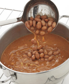 Preleva dalla casseruola la metà dei fagioli e tienili da parte. Frulla il resto con un frullatore a immersione, poi passalo al setaccio.
