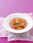 4) Quindi aggiungi i fagioli cotti con la loro acqua e porta a cottura. Eventualmente bagna con altro brodo per regolare la densità della minestra. Prima di spegnere il fuoco, regola di sale se necessario e distribuisci nei piatti. Profuma con una buona macinata di pepe e il basilico tritato.