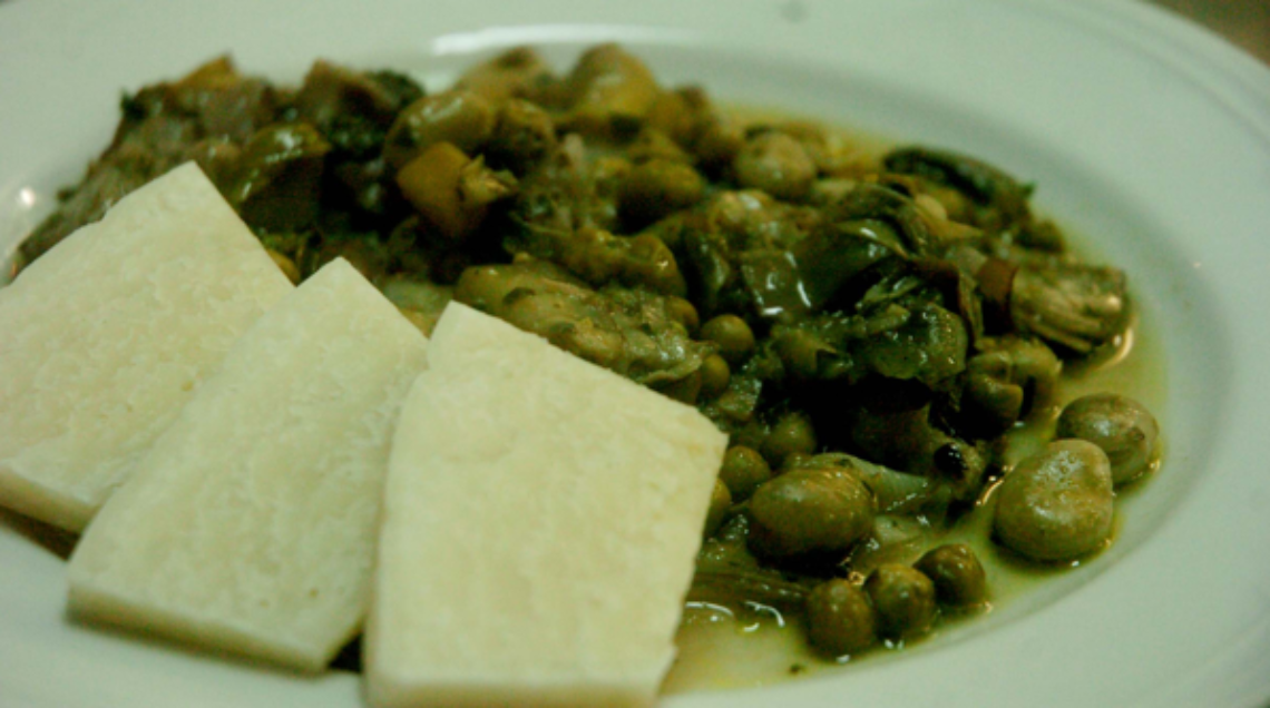 6 Aggiungete le listarelle di lattuga e cuocete ancora per 15 minuti, sempre a recipiente coperto e a fuoco basso. Alla fine le verdure devono risultare tenere ma ancora ben consistenti. Assaggiate e, se necessario, regolate di sale e pepe. A fine cottura sminuzzate la mentuccia fresca e lasciate insaporire, impiattate e ricoprite con petali di pecorino romano e un filo di olio extravergine a crudo.