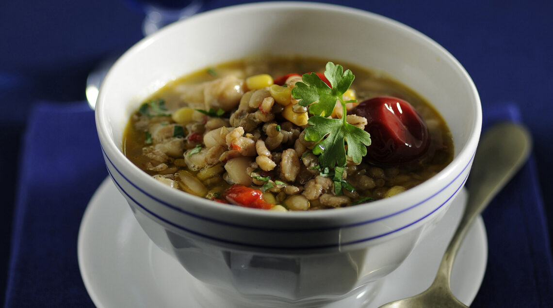 1) Inizia a preparare la ricetta dei cicci con papacelle lavando le lenticchie. Mettile in una casseruola capiente con 2,5 litri di acqua e porta ad ebollizione. Abbassa la fiamma e prosegui la cottura per circa 20 minuti. Se serve, aggiungi dell’altra acqua calda. Dopo 20 minuti unisci il grano precotto e cuoci il tutto per altri 10 minuti. Infine, aggiungi il mais, i ceci e i fagioli cannellini scolati. Regola di sale e prosegui la cottura della zuppa per 6-7 minuti.