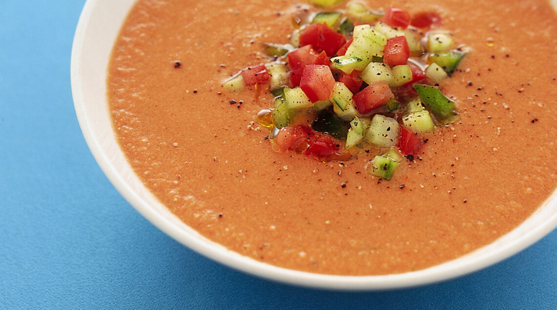 Il gazpacho è una zuppa fredda originaria dell’Andalusia che, grazie al turismo di massa, è riuscita a oltrepassare i confini regionali e nazionali diventando un piatto simbolo in tutto il mondo dell’arte culinaria spagnola. Il nostro gazpacho ricco, così chiamato per l’abbondanza degli ingredienti, ha in realtà origini contadine. Per via della sua freschezza veniva, infatti, consumato nei campi battuti dal sole come uno spuntino gustoso e rinfrescante. La freschezza è una caratteristica talmente ricercata da essere addirittura accentuata, almeno in alcuni casi, con l’aggiunta di cubetti di ghiaccio durante la preparazione.