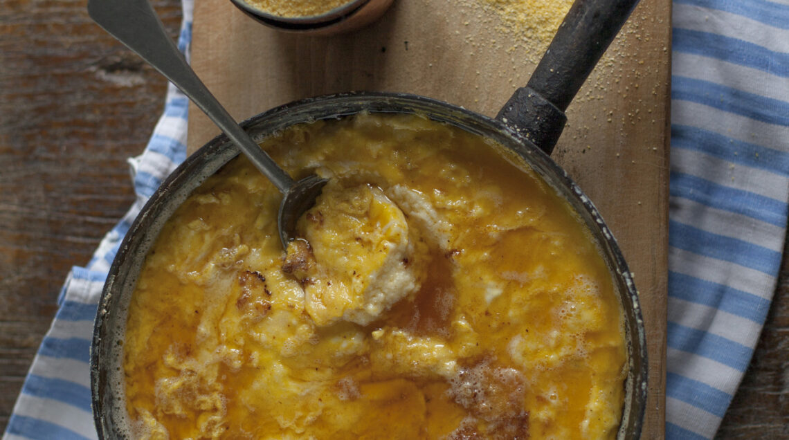 3) Togli la jufa dal fuoco, versaci sopra l'uovo sbattuto e poi il burro fuso ben caldo. Metti nuovamente la casseruola sul fuoco per pochi istanti (senza mescolare) e servi subito.