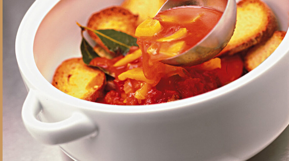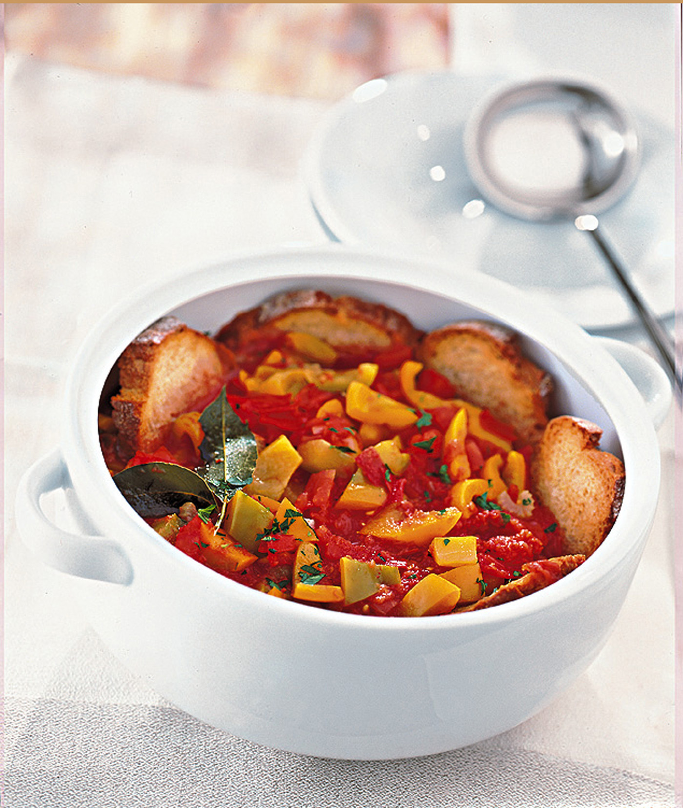 Utilizzato prevalentemente nella cucina povera e regionale, il pane casareccio raffermo è un ingrediente fondamentale della nostra zuppa di peperoni gialli. Questo tipo dipane ha la consistenza ideale per le zuppe perché rimane comunque compatto anche se immerso nel brodo caldo. Il pane raffermo, oltre a essere un ingrediente tipico delle zuppe, può anche essere utilizzato per fare i crostini, per preparare il pangrattato e i canederli, oppure può essere sostituito alla farina nella preparazione di torte e dolcetti.
