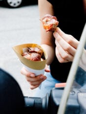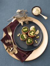 5) In un padellino antiaderente, a fuoco basso, prepara con il grana 4 cialde di circa 10 cm e rovesciale su uno stampino capovolto.