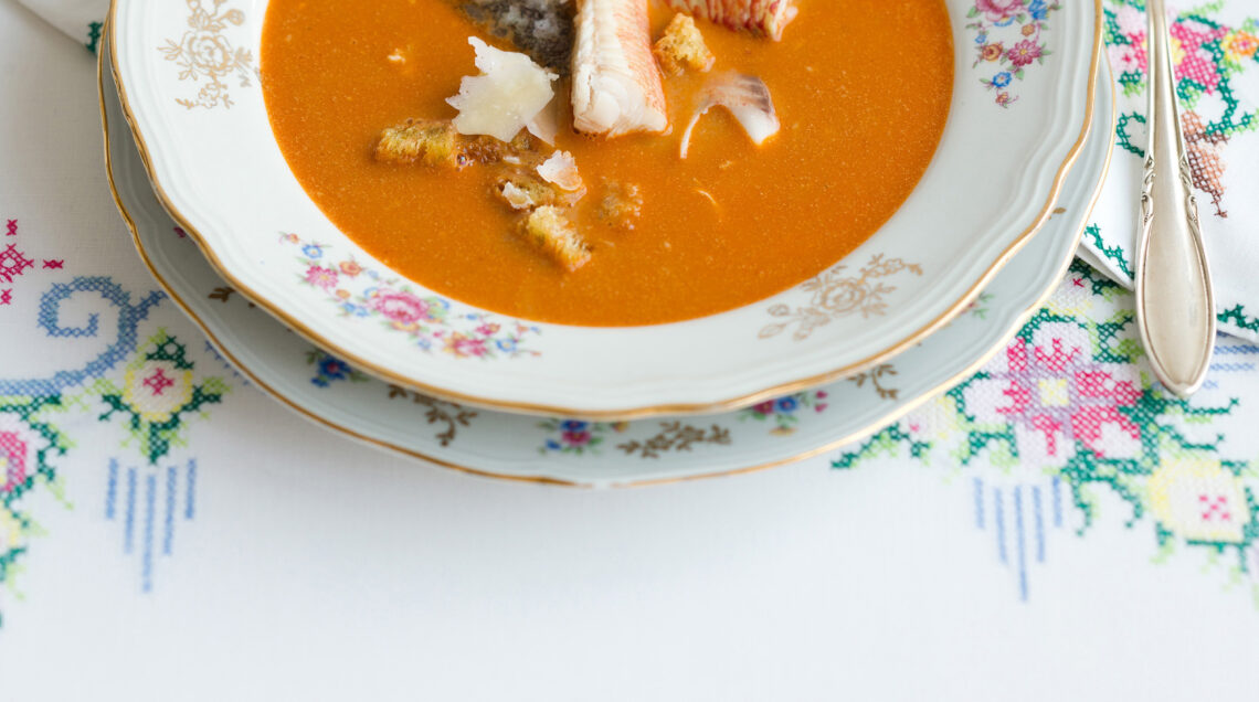 2) Versa la zuppa sui filetti, aggiungi i crostini e gusta subito la zuppa alla certosina con filetti di pesce.