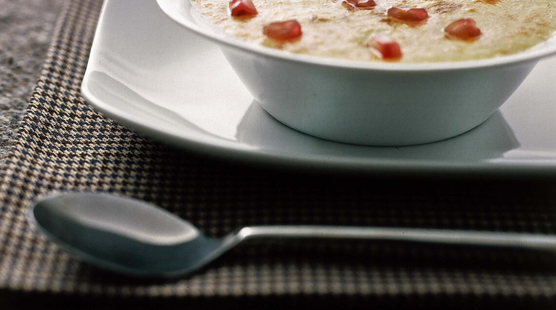 1) Distribuisci la zuppa di porri e patate in piccole terrine individuali, oppure in piatti che possano andare in forno, cospargi con il gruyère e passa sotto il grill caldo per circa 5 minuti, finché il formaggio, sciogliendosi, avrà formato una leggera crosticina dorata.