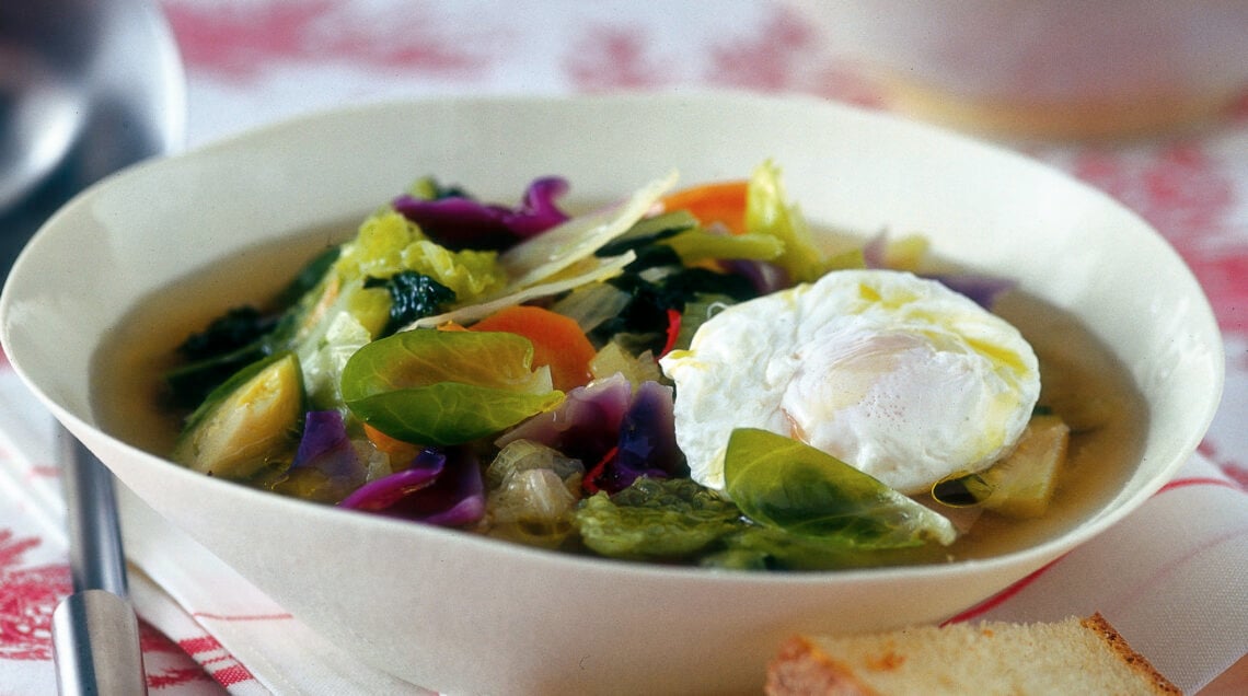 2) Non appena l’albume si sarà sufficientemente condensato, prendi un mestolo forato, togli l’uovo in camicia dall’acqua e mettilo direttamente sulla zuppa. Ripeti questa operazione per ogni uovo. Infine ricorda che il segreto per preparare delle perfette uova in camicia sta tutto nella rottura dell’uovo.