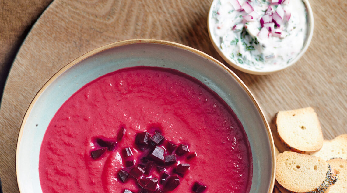 4 Togliete dal fuoco e fate raffreddare, poi mescolate le cime con la smetana e il cipollotto tritato. Servite il bortsh con il pane, tagliato a fettine e tostato, e la smetana a parte guarnendo, se vi piace, con dadini di barbabietola.