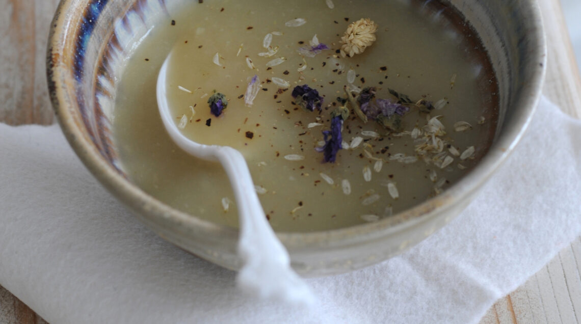 4) Servi la vellutata con un filo di olio a crudo, una macinata di pepe e qualche fiore.