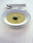 5) Lava le arance e grattugia un cucchiaino della scorza. Spremi le arance e aggiungi il succo alla vellutata. Scaldala ancora e, un attimo prima di toglierla dal fuoco, aggiungi i due tuorli e mescola subito energicamente. A questo punto regola di sale e pepe, incorpora anche la scorza d’arancia tenuta da parte e spegni.