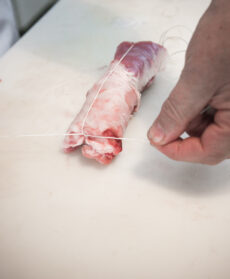 Salate, pepate, arrotolate la carne e legatela a salame con spago da cucina.